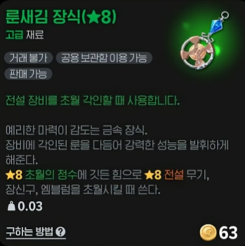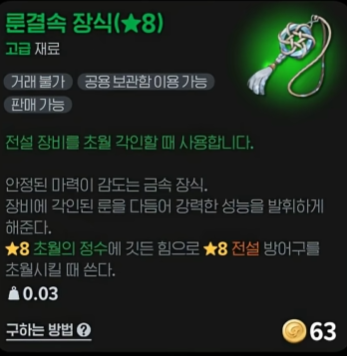 | 룬새김/룬결속 장식 | 다목적 제작대 제작, 타바르타스 레이드, 거래소 구매 |