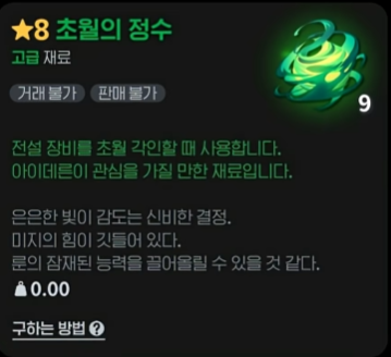 | 초월의 정수 | 심층 던전(매우 어려움), 타바르타스 레이드, 미스틱 던전 보상 |