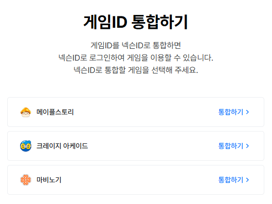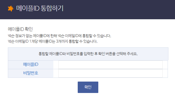 - 아까 분리해두었던 메이플 ID와 비밀번호를 입력하여 통합을 완료합니다.